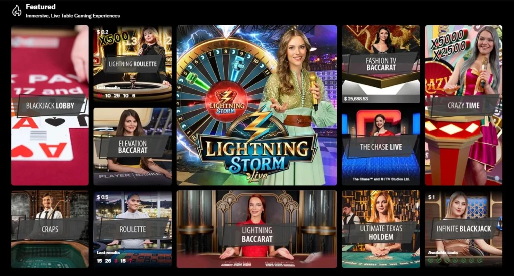 Popular live dealer options include: